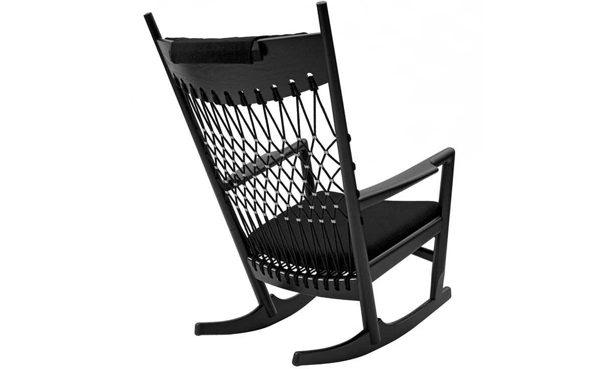 Rocking Chair(摇椅)是大师Hans J. Wegner设计的众多摇椅中的经典之作。摇椅具有简洁的线条,精准的的人体工学结构,是Hans J. Wegner在1944年为身怀六甲的妻子设计,扶手前端微微向外展开,是为让妻子方便起身。实木制成,轻便耐用,简约单纯,仍于潮流中立于不败之地,为Hans J. Wegner最受欢迎的经典作品之一。我们已经能从中感受到圈椅的影子。摇椅水曲柳制作,坐垫麻布软布(内部填充优质海绵),棉绳编织(有白色,黑色,棕红色可选)。