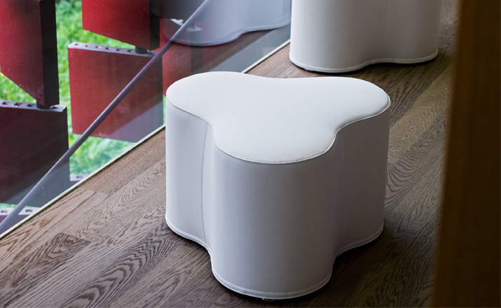 Trifoglio Pouf(trifoglio墩)意大利著名设计师Pietro Arosio的作品。造型就像三叶草叶子,清新自然,并且能根据您的想象力和创造力随意组合。做工精湛,缝线细腻,制作采用防霉实木内框架或玻璃钢内胆、高密度海绵、进口布艺或皮革(颜色可选)。即使不使用,单纯用来欣赏也是赏心悦目的。