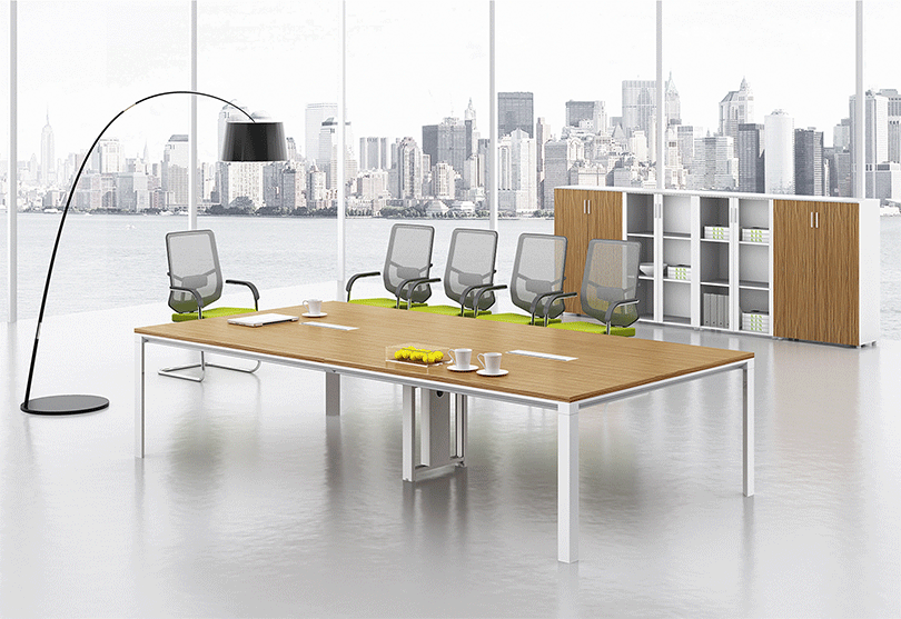| 1、钢制脚架,实用高端大气; | 2、整齐划一、人性方便的桌面铝合金过线系统。 |