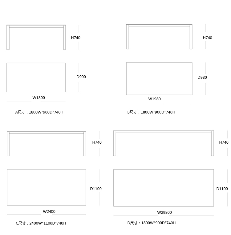 D:1800W*900D*740H