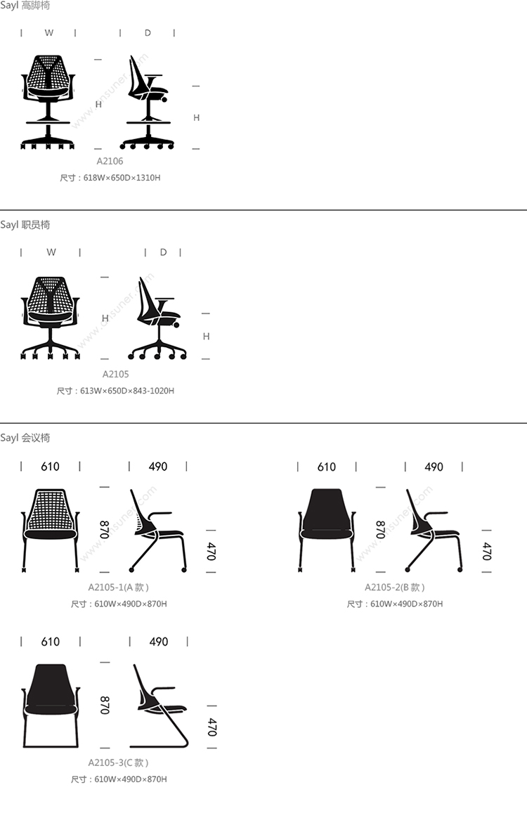 Sayl 高脚椅 系列尺寸/示意图