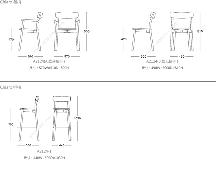 Chiaro 系列尺寸/示意图