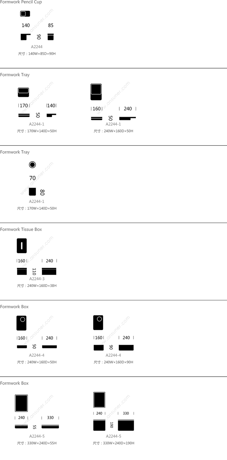 Formwork Pencil Cup 系列尺寸/示意图