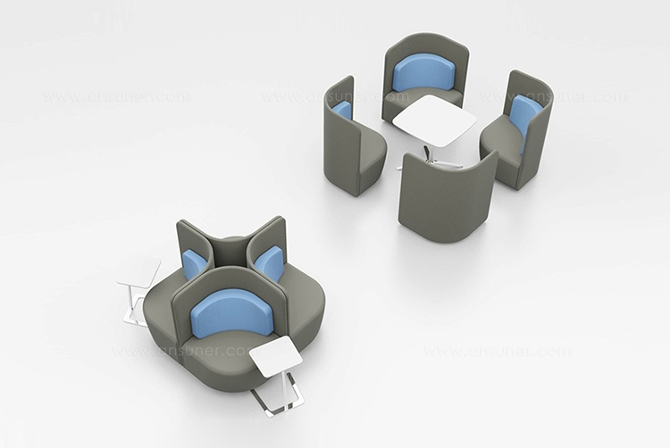 作为一种有高、低背两种款式可供选择的椅子,这种设计可以提高声学特性,并吸收周围背景噪音。