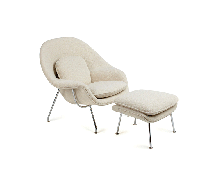 Womb Chair 的基本构造是由抛光镀铬或雾面钢管底座,以一体成型的泡棉包覆框架所组成。 Eero Saarinen 设计这张椅子挑战了一般世俗的规则,打破窠臼,树立了新的现代设计和舒适的标准,充分显示他的高超才华。
