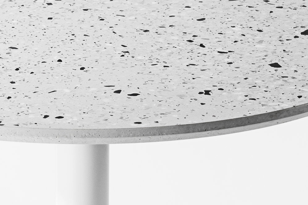本产品采用了混凝土掺入石英粒的水磨石,随机分布的石英为家具提供了足够的装饰,既简朴又精致。 水磨石板材与支架通过巧妙的结构连结,垂直错开的支架使产品整体更具形式感。 倒角使得整体更具细节,利落的直线,是本土创造追求并相信的简单,和直接的材质表达的手法,没有多余的装饰造型线。