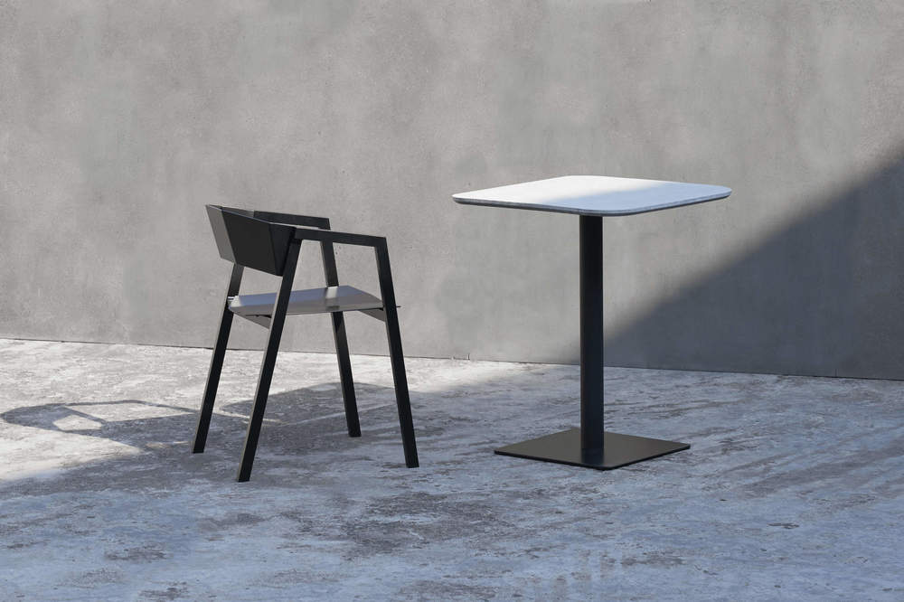 本产品采用了混凝土掺入石英粒的水磨石,随机分布的石英为家具提供了足够的装饰,既简朴又精致。 水磨石板材与支架通过巧妙的结构连结,垂直错开的支架使产品整体更具形式感。 倒角使得整体更具细节,利落的直线,是本土创造追求并相信的简单,和直接的材质表达的手法,没有多余的装饰造型线。