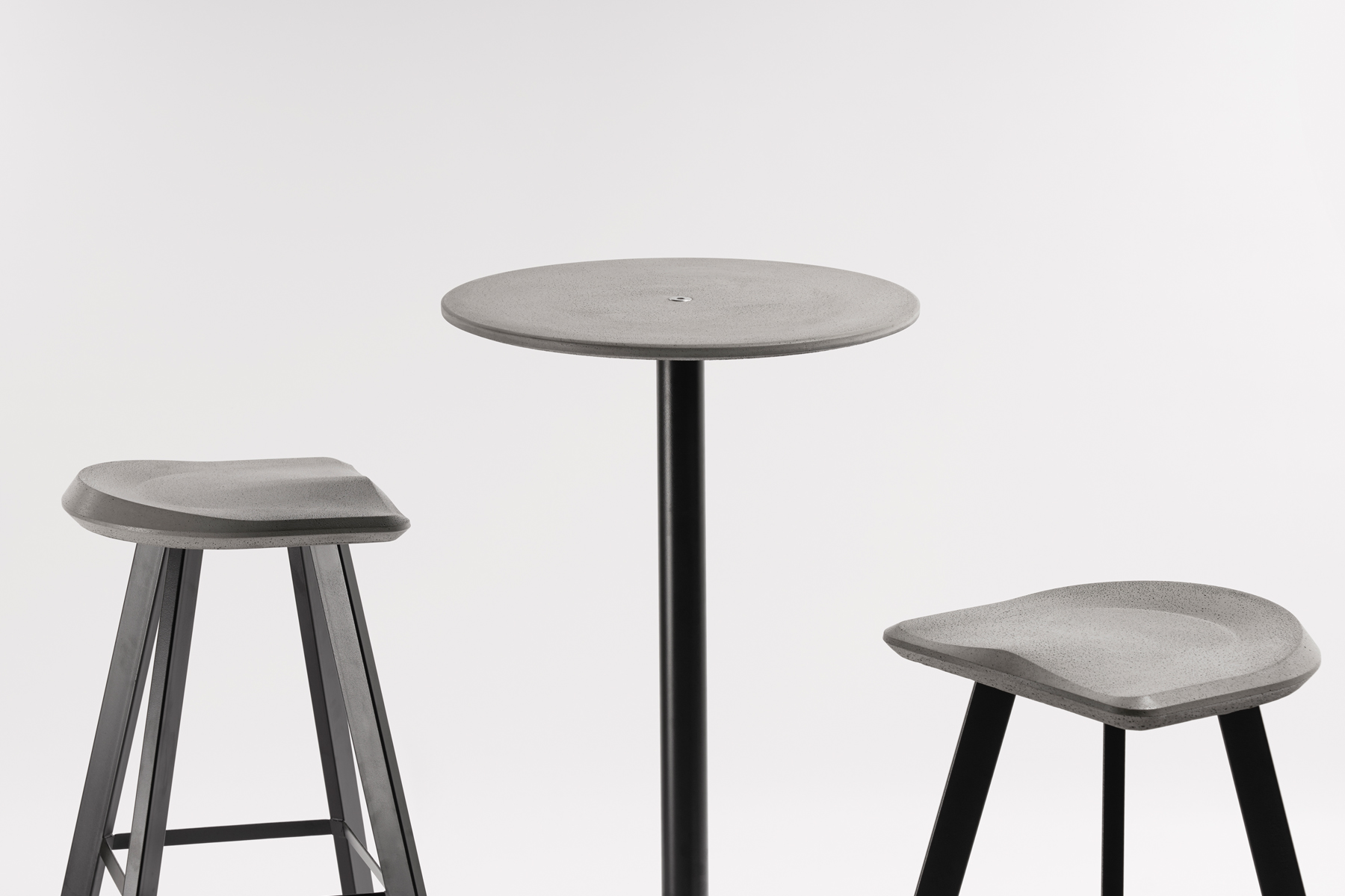 桌子底座与面板均为水泥,金属部分使用了不锈钢材料与防锈涂料处理,增强了使用的耐久度。 面板内含纤维网使其具有韧性并且增强了面板受力程度。水泥部分均可拆分,方便运输。