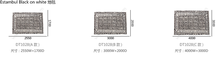 Estambul Black on white 地毯 系列尺寸/示意图