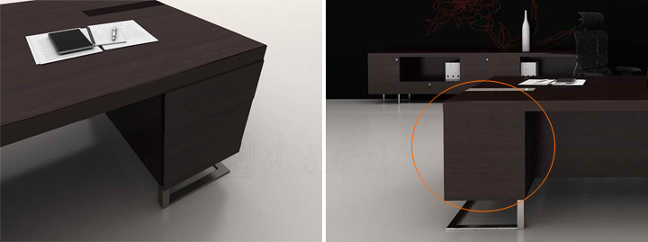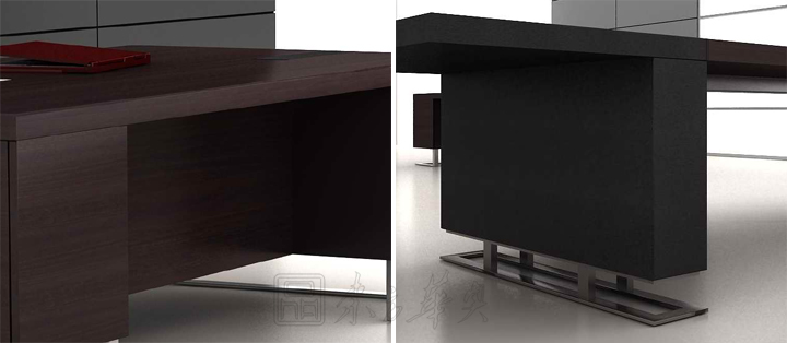 ※ 班台:厚实沉稳的台板组合轻盈的钢脚,折射成投影效果平衡了厚实与轻盈,形成强烈的视觉冲击,厚直边工艺打破了曲弧线条的概念,体现了佛伦派克尊贵的设计理念:举重若轻、非对称平衡美。