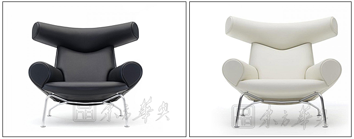 Hans J. Wegner 1960年设计的公牛椅(xo chair),以牛皮包裹填充材料,结构坚固出众,霸气的外形搭配轻巧的金属支架,让公牛椅成为了一款非常经典的座椅。坚固可靠的结构搭配宽大的外形,得以使用者能从不同的方式入座,而且可以不断变换坐姿,因此坐起来非常的舒适,这也是Hans J. Wegner自己起居室中最为喜爱的一款椅子。