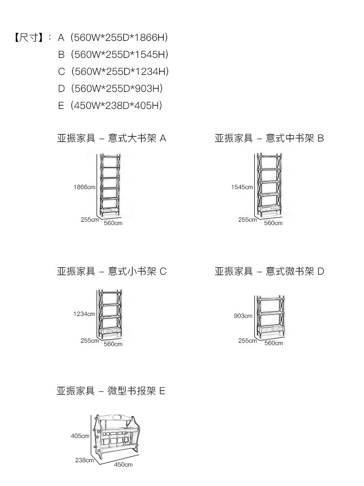 亚振家具 - 意式书架 产品尺寸/示意图