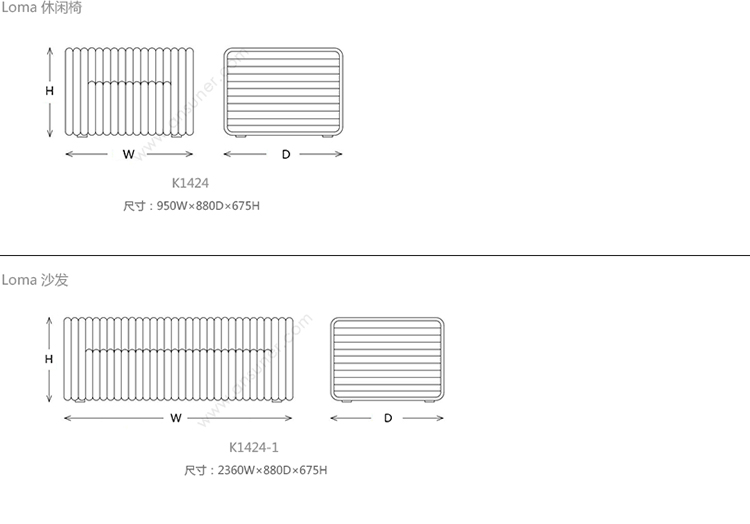 Loma 休闲椅 系列尺寸/示意图