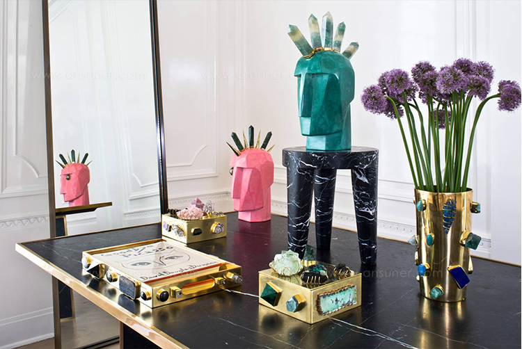 独一无二的托盘采用从世界各地收集的手工精选石头。 它采用抛光黄铜制成,是一款灵魂时尚的配饰,为任何空间增添精神和色彩。