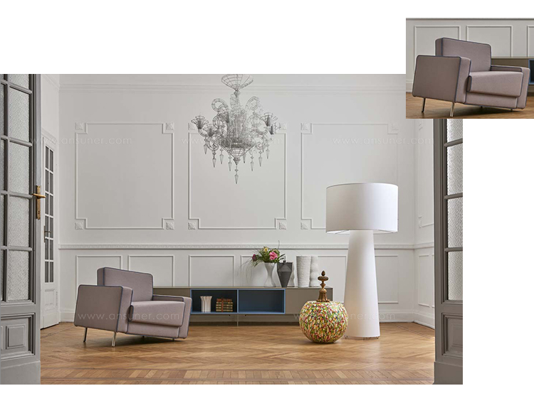 适应当代世界突然变化的精神激发了Fabio Novembre设计Adaptation系列的灵感。 一个引人注目的视觉冲击标志着这个项目与由靠背的斜线形成的视错觉,模拟下降效果。 不同高度的可变支腿系统和逐渐增大尺寸的垫子使座椅底座与地面完全平行,确保了舒适度。 沙发和扶手椅采用织物和皮革制成,采用以下对比色饰面,增强了物体几何形状:黑色,白色,灰色,红色,酒红色,空军蓝。