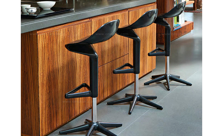 这款椅子设计灵感来自于弯曲的勺子。侧看优美的曲线设计,给空间增加动感。隐藏式的高度调节阀使整体造型更加完美。宽阔的底部支撑如吸盘牢固地吸附于地面,可防止倾覆。当您坐入其中作微微的颤动,特别的椅背给您带来不一样的体验。