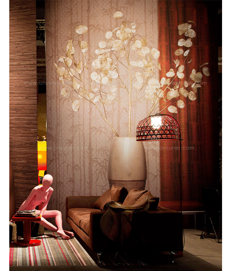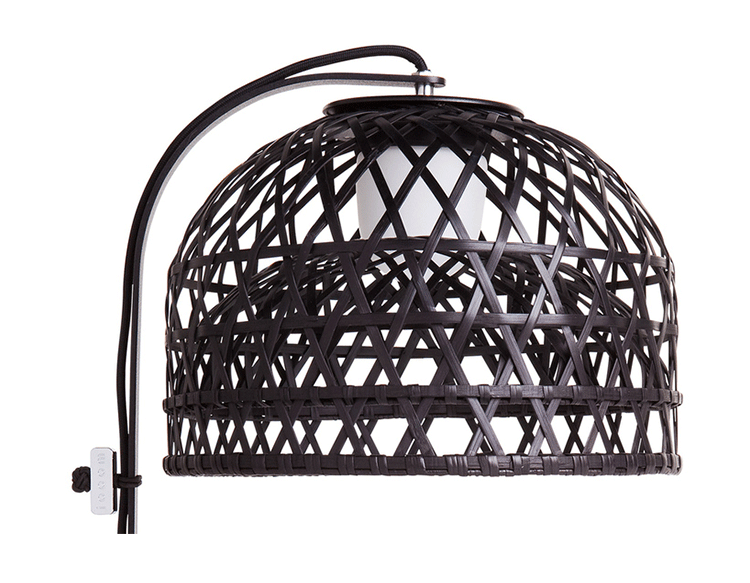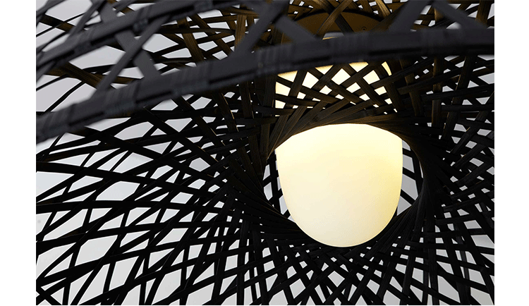 "This oversized light was inspired by a made-believe folklore story of an Asian emperor & a beautiful nightingale…Once upon a time an Asian emperor was given a nightingale as a gift. The bird was so beautiful and sang in such a bewitching way that the emperor fell immediately in love with it and decided to keep it forever by his side. So the nightingale was put in a beautiful, majestic cage in the imperial chambers & became the delight of the emperor's days…Neri & Hu took on a modern translation of this story and produced a collection of pendant/floor/table lamps in stained woven bamboo. The poetics of an emperor's life, a life no longer relevantin today's world, can be abstracted in the form of an object such as the light. The use of hand-crafted bamboo weaving in an industrial product creates an elegant yet uncanny design statement. A lamp so particular & majestic that it could become your personal nightingale forever by your side to brighten up your days.The Emperor collection includes suspension, floor and table lamps. They are offered with a glass diffuser that creates a very warm glow of light. Each cage is woven by hand and therefore has a unique character. Touch dimmer on table lamp is operated by touching the stem.