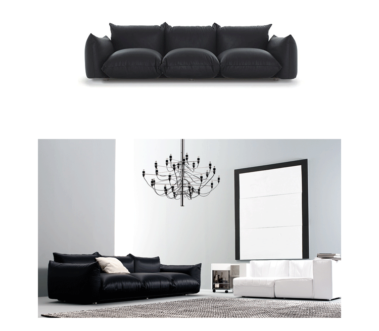 "marenco sofa系列沙发由设计师Mario Marenco在1971年所推出,Arflex公司出品,有单座,双座,三座,和五座组合形式。这款经典的沙发线条经典,舒适度饱满,成为摩登家居用品经典作之一。外型以简约细腻的北欧设计为方向,轻盈的金属脚架与薄型扶手,在厚薄粗细之间,视觉比例的层迭丰富,融合义式沙发中柔软舒适的元素,靠垫内衬高密度泡棉,兼具支撑性与松软度。这套沙发采用革命性的方式组合,垫子及扶手都是独立的部分。枕头是挤压钢管的金属框架,提供了刚性和耐用性。胶合板基地加上纤维覆盖。制作采用防霉实木内框架、进口羊毛绒布、内部填充高密度沙发棉,保证了高品质的奢华与舒适。