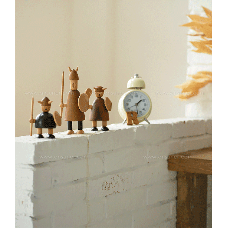 由于50年代的丹麦活跃着一股「斯堪地那维亚现代主义设计」风潮,延续低调简洁的风格并大量采用自然木材与传统工艺所迸出的美丽火花,设计大师Jacob Jensen也致力其中成为见证历史的大师之一。Jacob Jensen Wooden Viking(维京海盗)是经典的北欧形象,随着《加勒比海盗》系列电影的风靡,维京海盗在骁勇彪悍的传统形象里增加了俏皮、温暖、幽默的一面。这一组维京海盗形象为主题的北欧木雕设计,正是基于如此可爱的解读而做,摆在桌面上形成了饶有趣味的场景感,也是用来赠送的高档礼品。