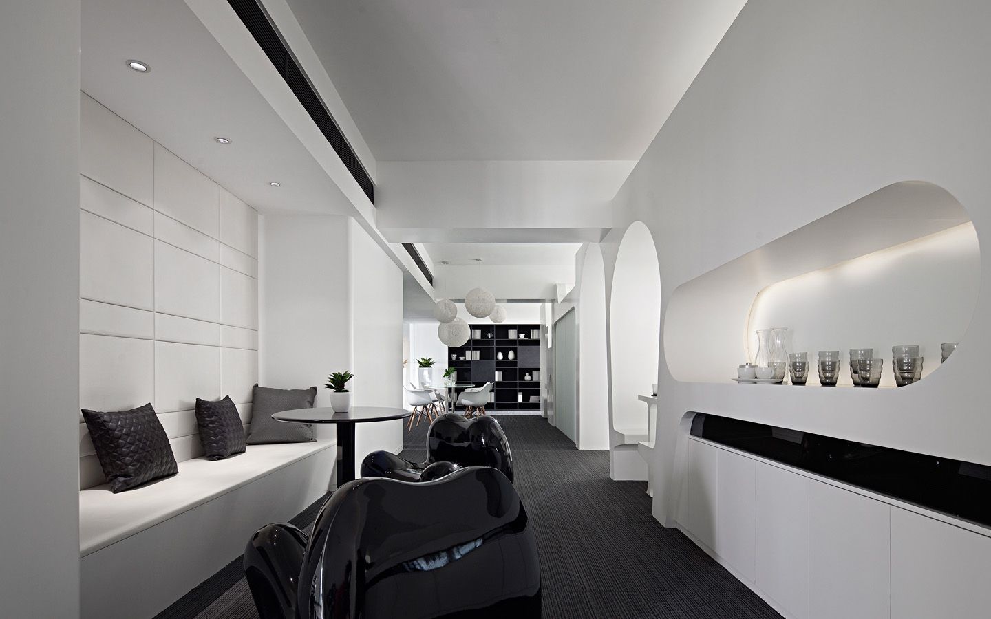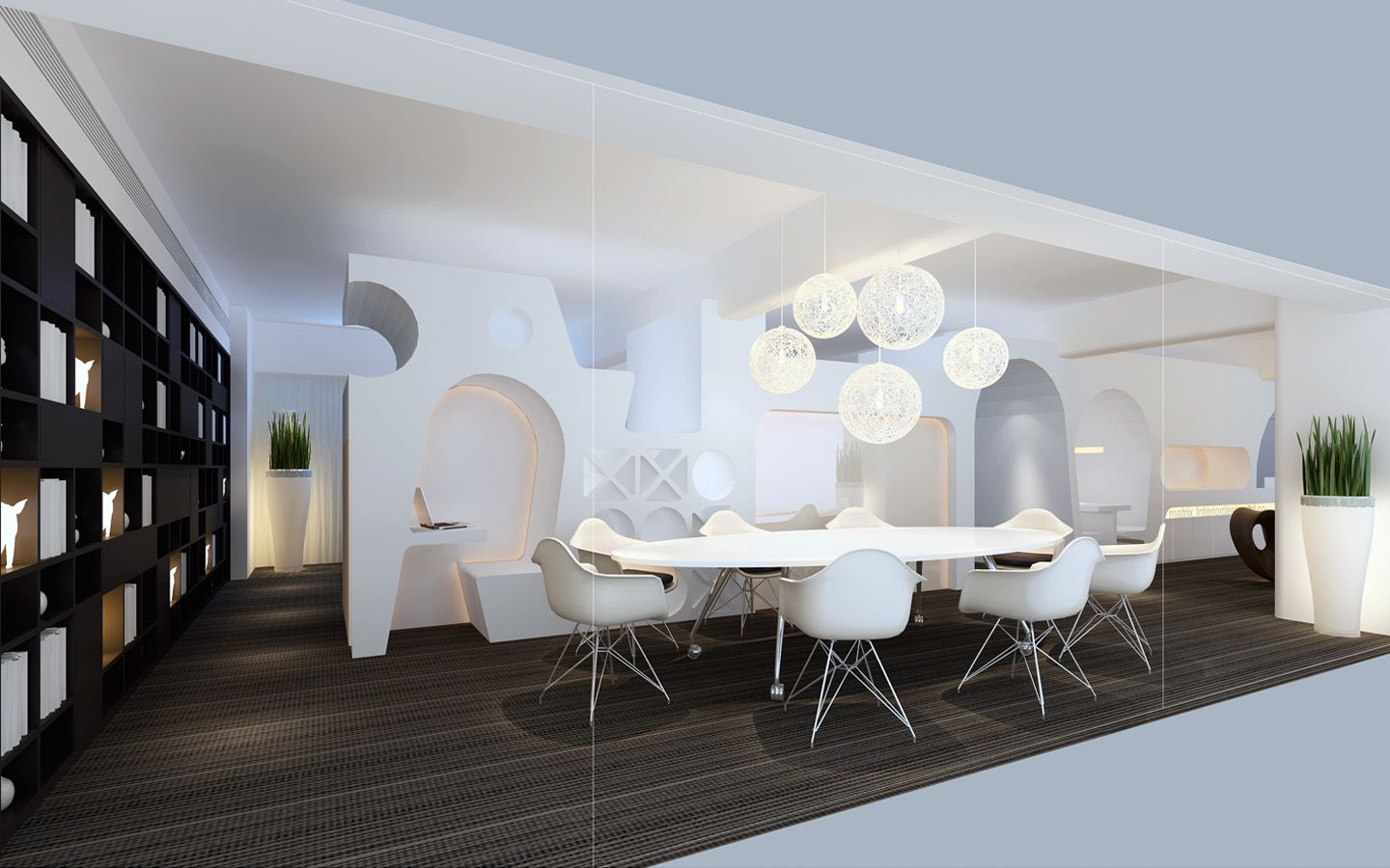 成都复地创意办公示范单位选择在一个不是非常大的空间作为自己的办公室,在设计上别出心裁、独树一帜,镂空的隔断,古朴的办公桌,绿色的植物点缀了灰暗的空间,营造舒适办公环境。