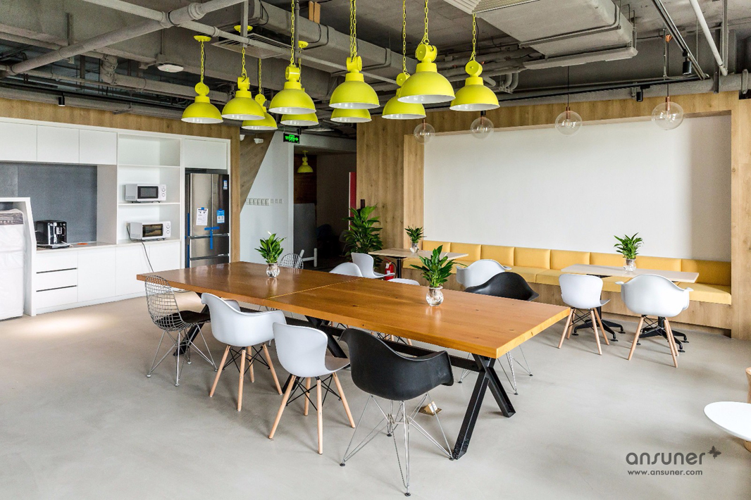 圆弧形的会议室和休闲区是本次设计的核心,也是凸显共享和交融的重点,通透的玻璃会议室和无遮拦的休闲区设计形成完美的结合。休闲区的设计得益于当今的科技发展,移动式办公成为可能。标注办公桌渐渐转化为共享办公桌,多元化的移动办公方式提供了更丰富的选择。个人固定办公桌时代已经成为过去,员工要考虑的事情就是选择哪里更合适今天的心情、今天的工作。